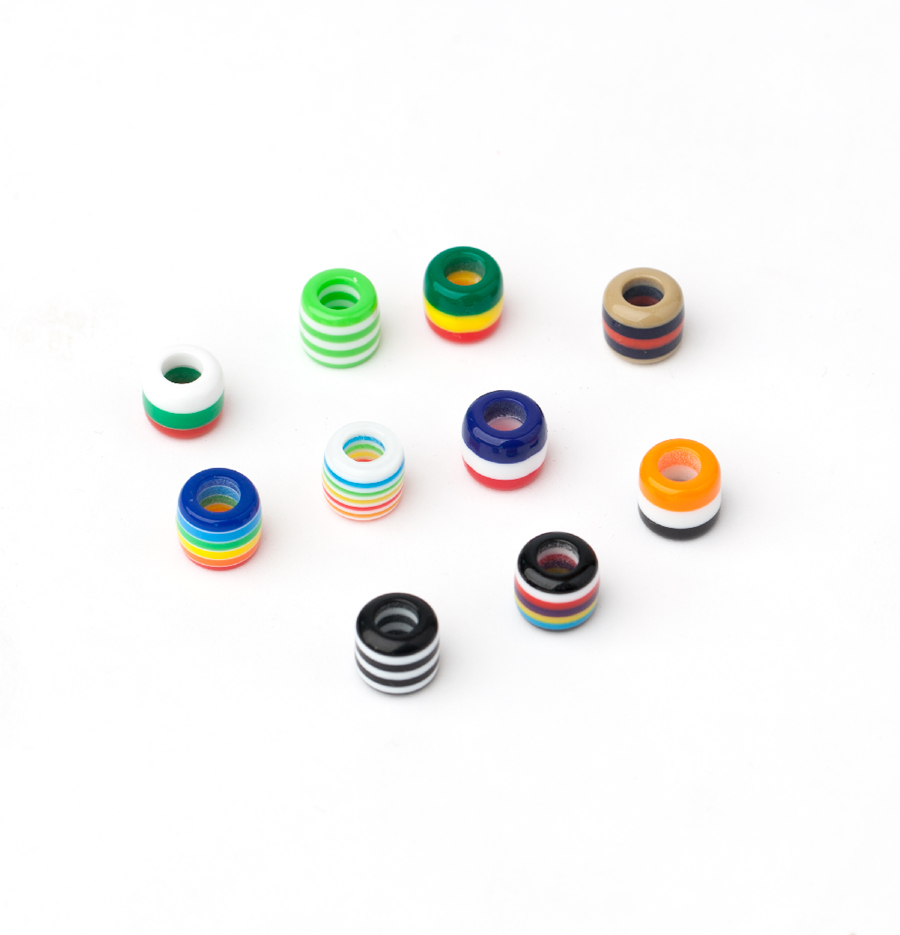 A műanyag színes hajgyöngyök a vékonyabb, vagy normál méretű tincsekben fonott hajakhoz, vagy raszta tincsekhez használatos hajgyöngyök.