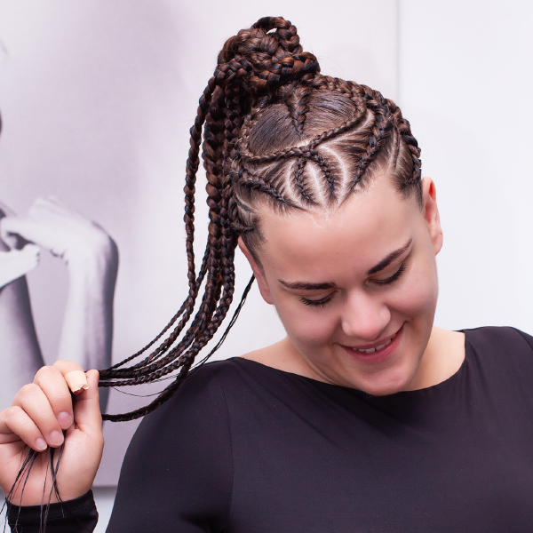 2. Megkülönböztetés más fonásoktól: Ellentétben például a hagyományos afrofonással (box braids), ahol a tincsek a tövektől szabadon lógnak, a parkettafonás végig a fejbőr vonalát követi. Ezáltal laposabb, a fejformát jobban követő frizura jön létre, mellyel sokkal jobban kiemelhető egy szép arc, vagy egy szép fejforma. A parkettafonás kiváló alap lehet parókákhoz, póthajak rögzítéséhez is, ilyen a hajfelvarrás, vagy a hurkolásos hajhosszabbítási, hajdúsítási technika.